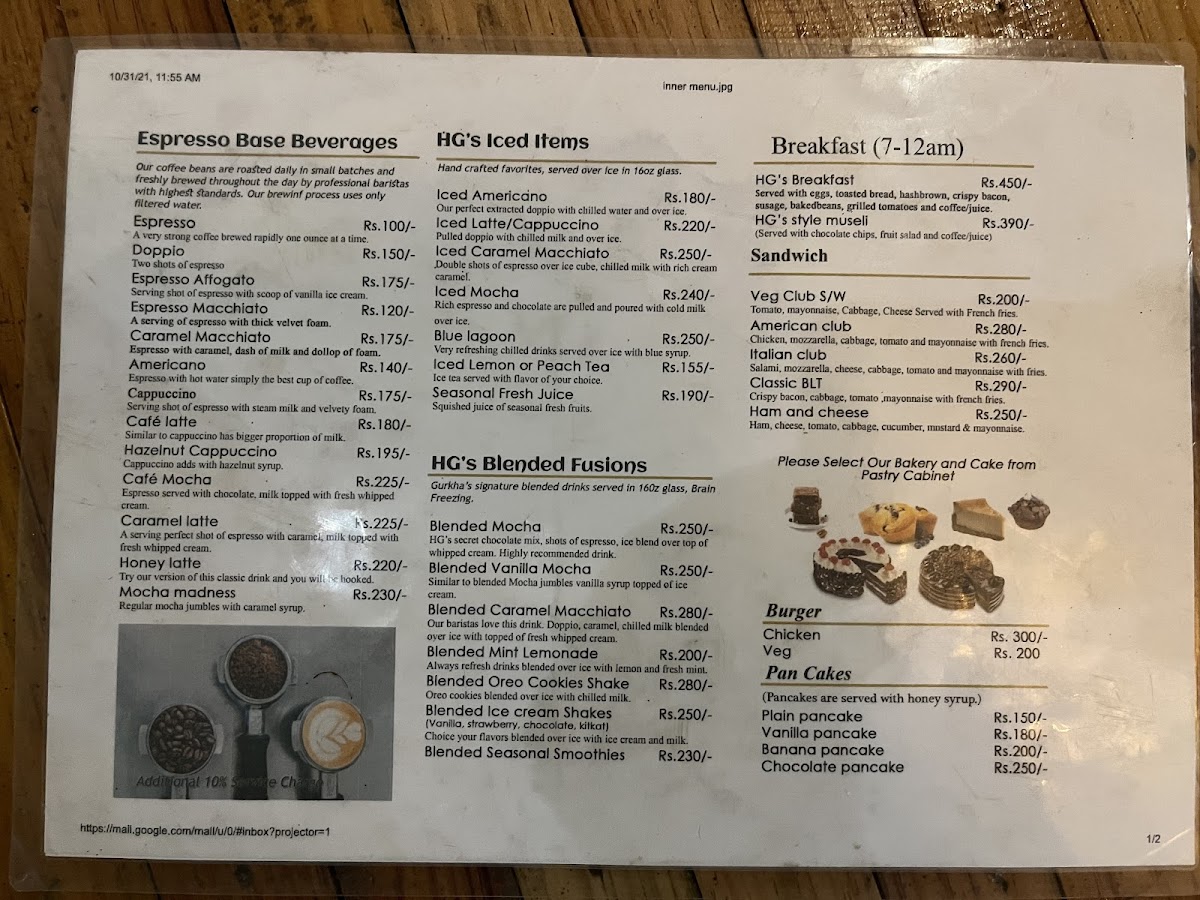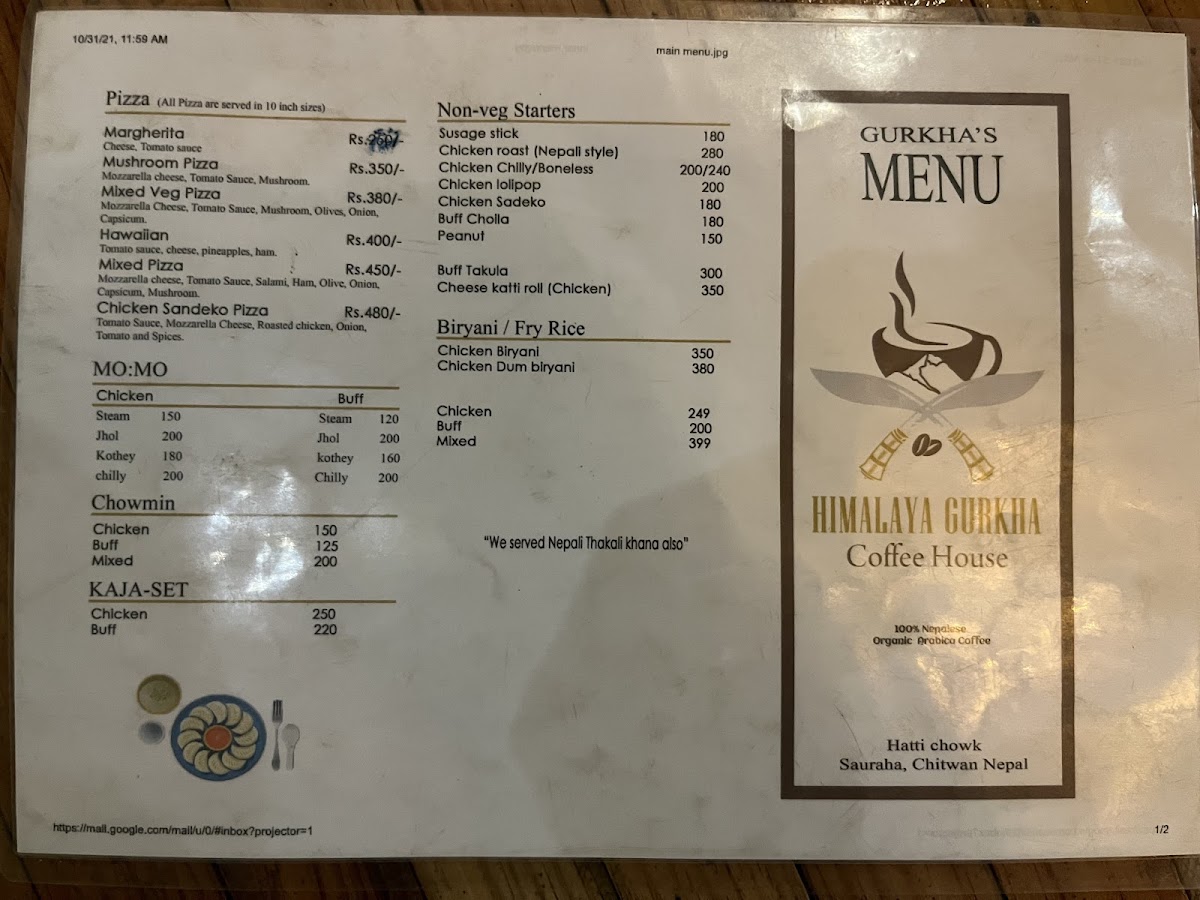 Himalaya Gurkha Coffee House Menu